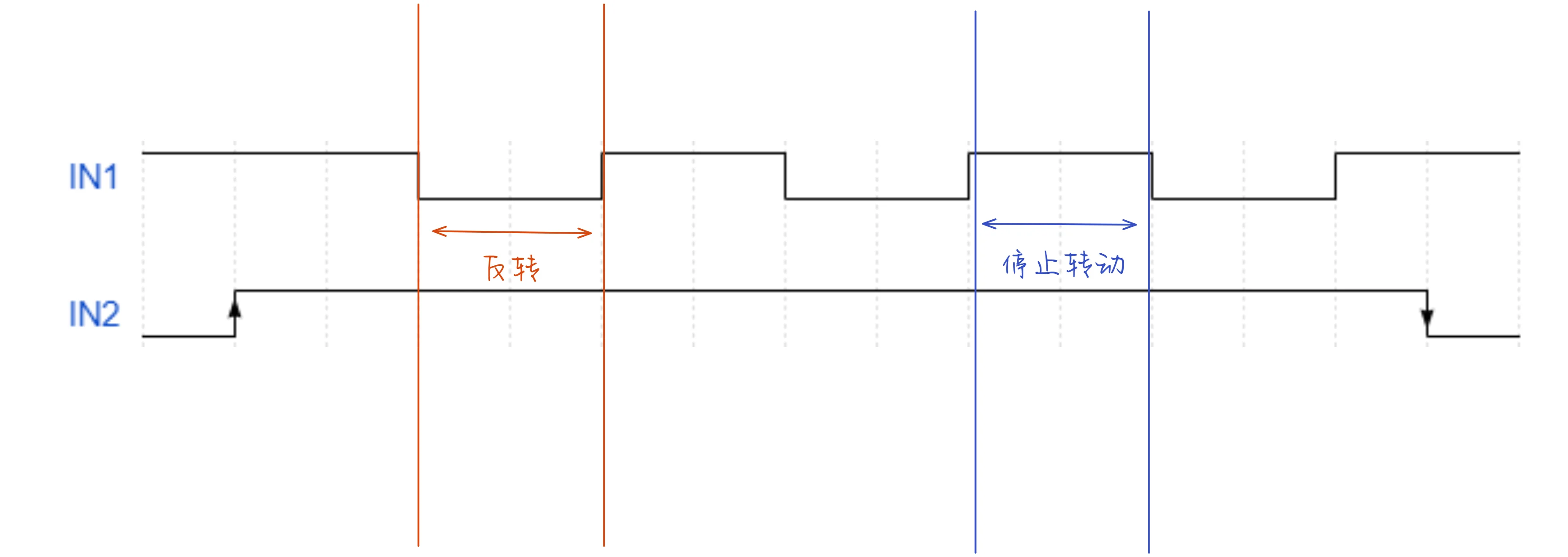 PWM1 占空比=PWM2 占空比- 电机停止转动